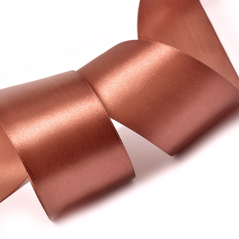 Атласная двусторонняя лента 5 см (1 метр), красно-коричневый