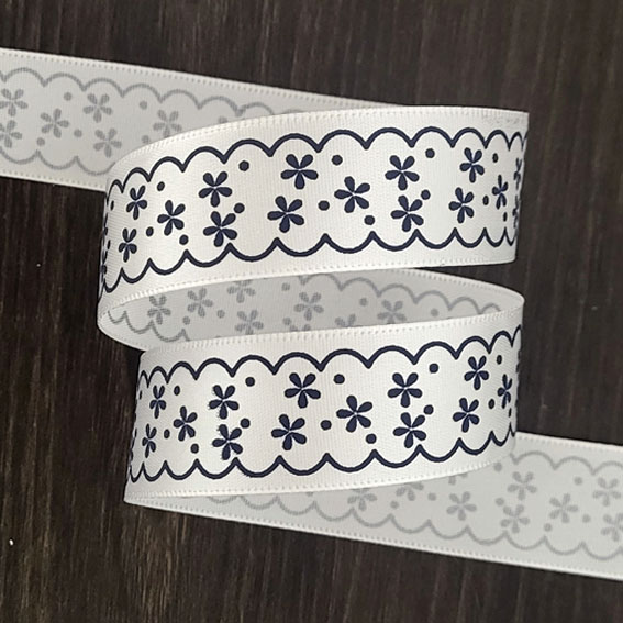Атласная лента “Цветы” 2,5 см (1 метр), белый