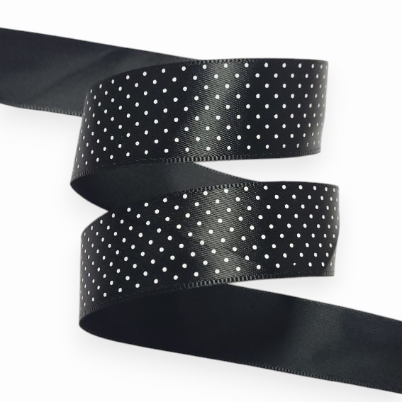 Атласная лента “Горох” 2,5 см (1 метр), чёрный
