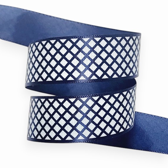 Атласная лента “Клетка” 2,5 см (1 метр), тёмно-синий