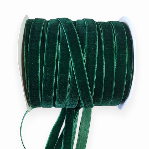 Бархатная лента 1 см т.тёмно-зелёный 37 (бобина 16,5 метров)