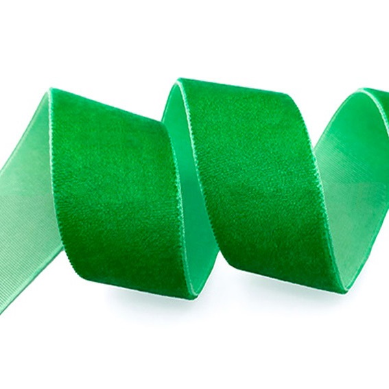 Бархатная лента 2.5 см, зелёный 35 (1 метр)
