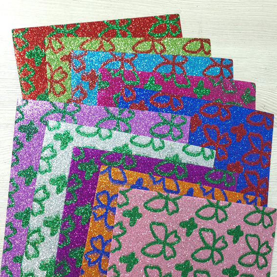 Фоамиран глиттерный 1,7-2 мм ассорти 20*30 см (10 шт) (Бабочки)