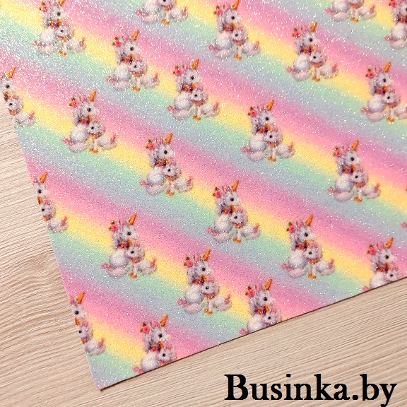 Кожзам с блёстками “Радуга, единорожки” 20*30 см (1 шт)