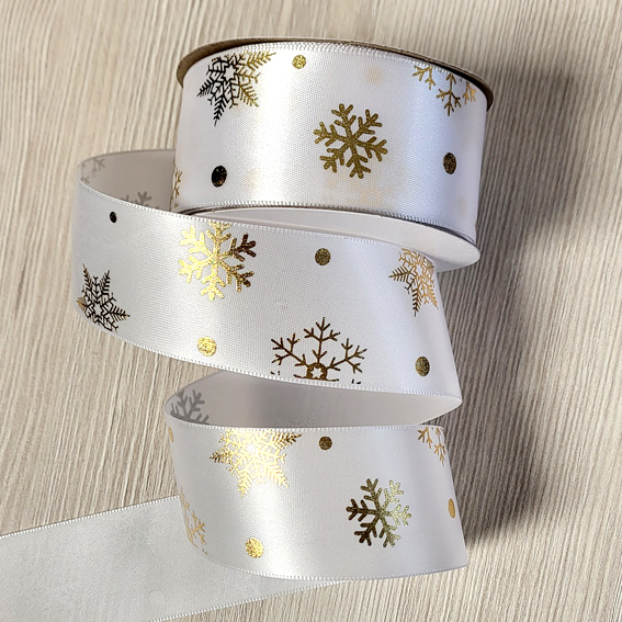 Лента атласная 4 см “Снежинки” (1 метр), белый
