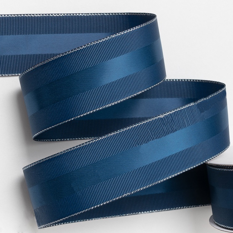 Лента репсовая с люрексом и атласной вставкой 4 см (1 метр), тёмно-синий