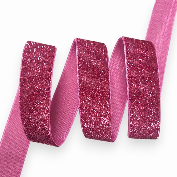 Лента с люрексом на тканной основе 2.5 см, тёмно-розовый (1 метр)