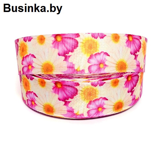 Репсовая лента “Цветы” 2,5 см (1м)