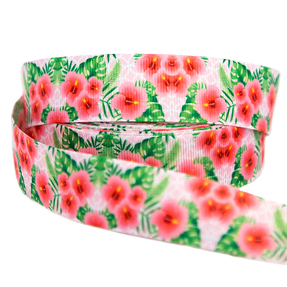 Репсовая лента “Цветы” 2,5 см (1м)