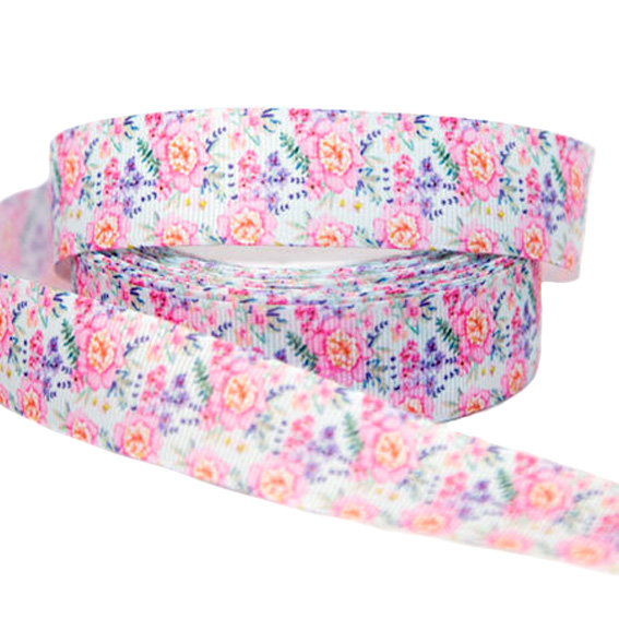 Репсовая лента “Цветы” 2,5 см (1м)