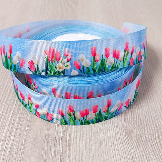Репсовая лента “Цветы” 2,5 см (1м)