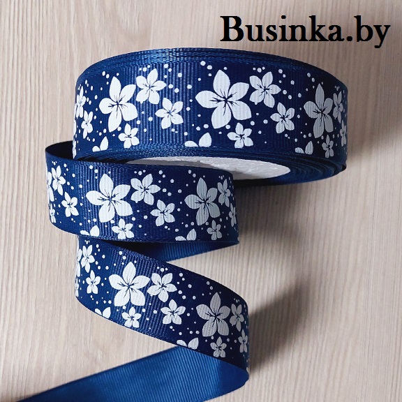 Репсовая лента “Цветы” 2,5 см (1м), тёмно-синий