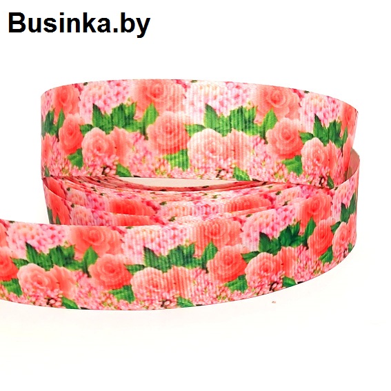 Репсовая лента «Цветы» 2,5 см (5 метров)