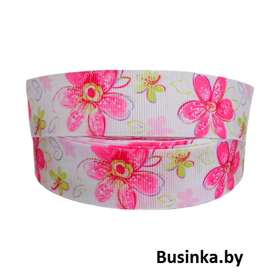 Репсовая лента «Цветы» 2,5 см (5 метров)