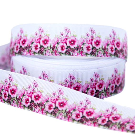 Репсовая лента «Цветы» 2,5 см (5 метров)