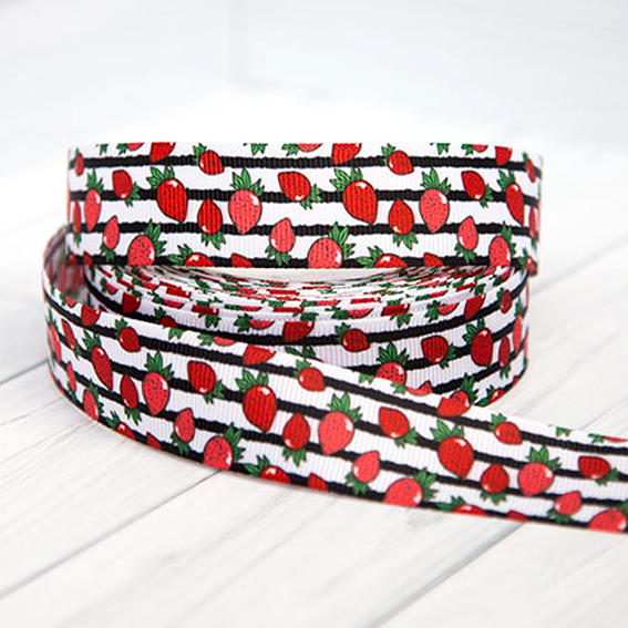 Репсовая лента «Клубнички» 2,5 см (5 метров)
