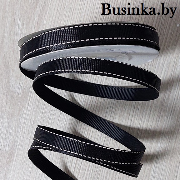 Репсовая лента “Мелкая строчка” 1 см, чёрный (1 м)