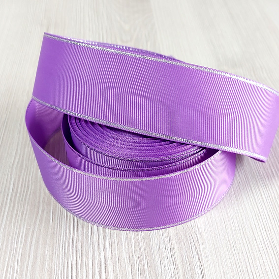 Репсовая лента с люрексом 4 см, (1 метр) сиреневый/серебро