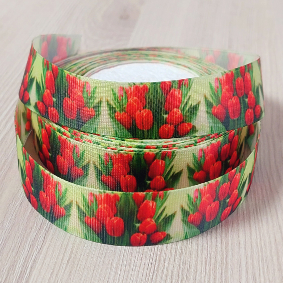 Репсовая лента “Тюльпаны” 2,5 см (1м)