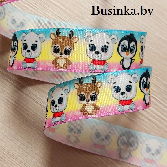 Репсовая лента «Зверята» 2,5 см (5 метров)