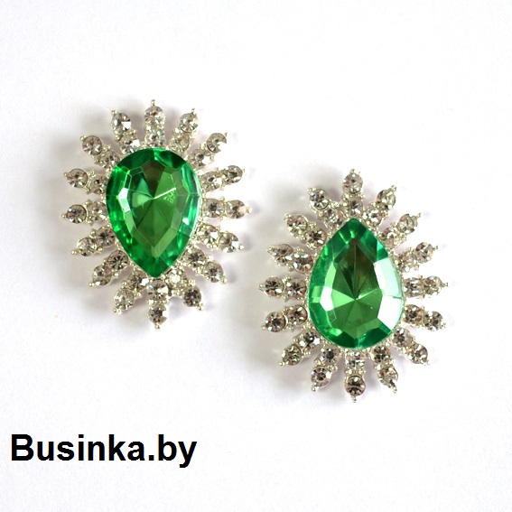 Серединки ювелирные 27*32 мм, серебро/зелёный (1 шт)