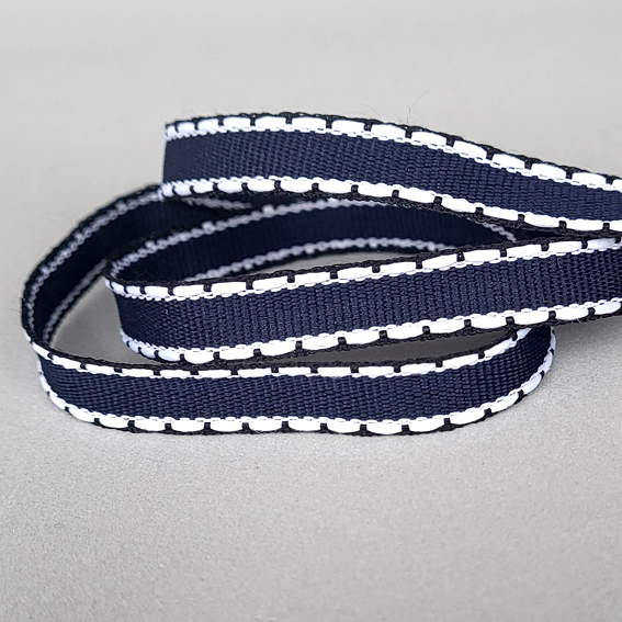 Текстильная лента с декоративным стежком, 0,9 см (1 метр), тёмно-синий