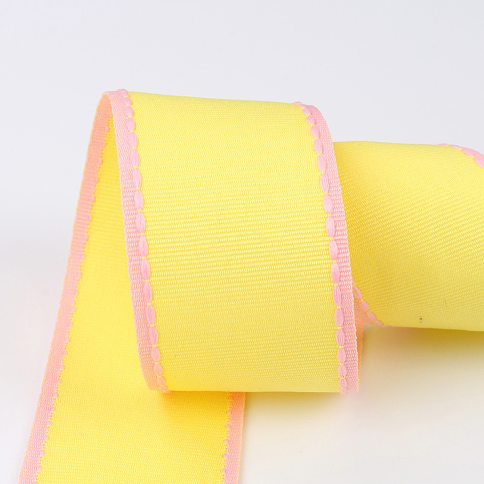 Текстильная лента с декоративным стежком, 4 см (1 метр), жёлтый